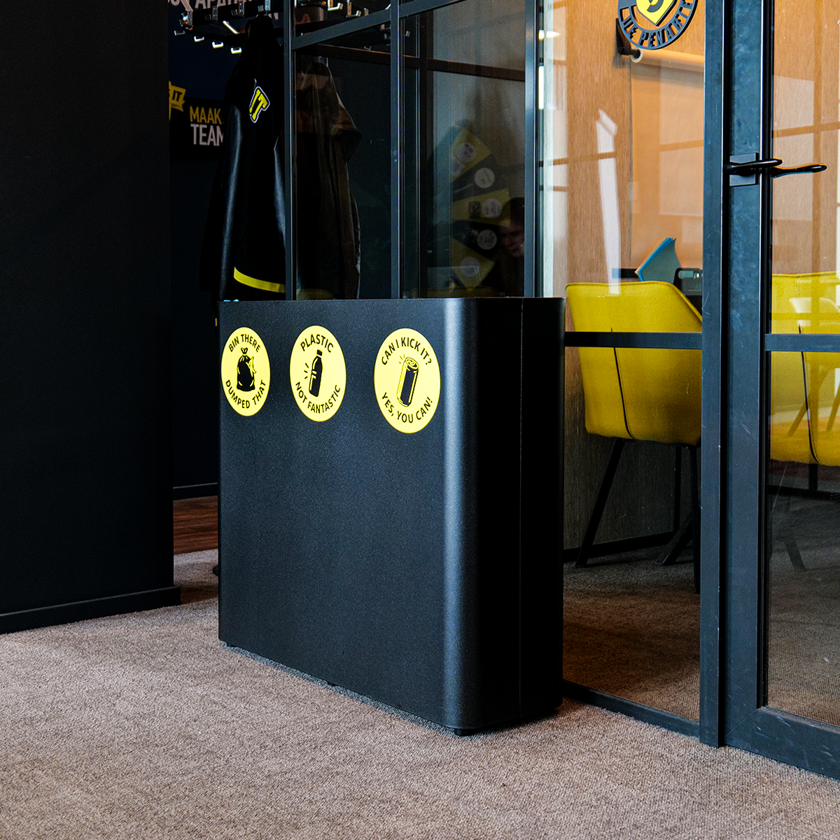 Elke werkdag begon met hetzelfde hardnekkige probleem: te kleine pedaalemmers, snel vollopende zakken en een rommelig hoekje dat niet paste bij de uitstraling van Team Rockstars IT. “Onze oude opstelling was onpraktisch, rommelig en kostbaar in tijd”, geeft officemanager Ilse van Zalinge aan. "Ik zag het verhaal van Demi van de Brabanthallen en klopte bij BINQER aan."